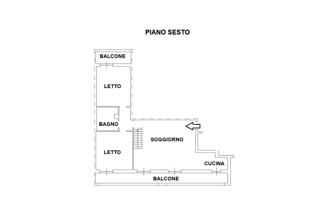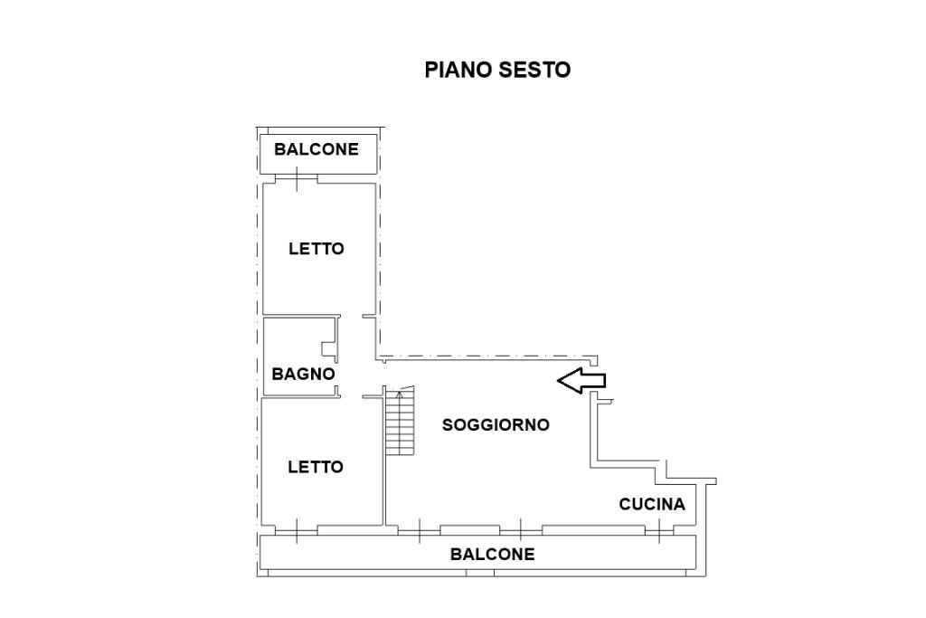 Appartamento sito all’ultimo piano su due livelli (sesto e settimo), collegati da scala interna, precedentemente adibito ad uso ufficio.