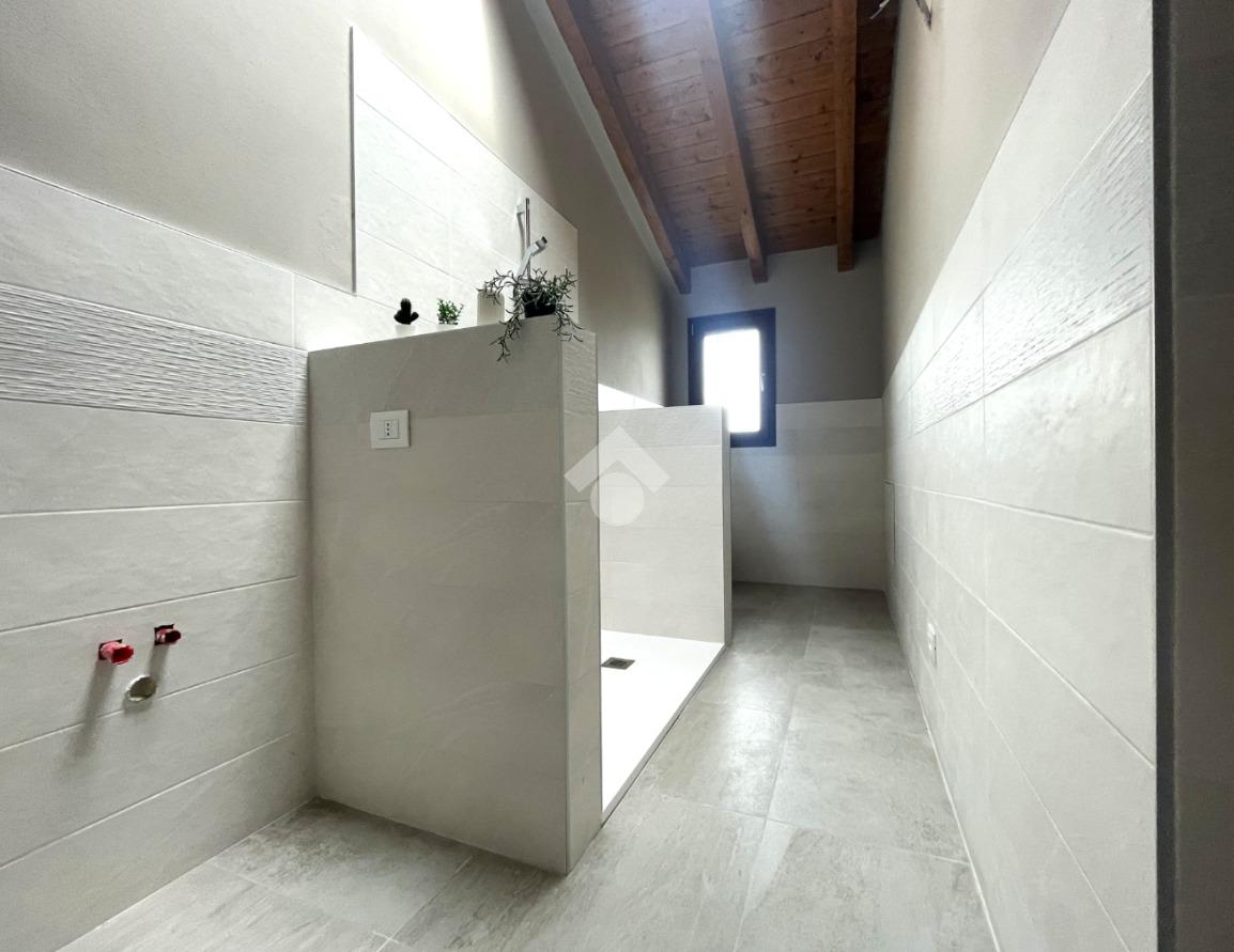 Villetta di nuova costruzione in classe energetica A3, con possibilità di impianto fotovoltaico per raggiungere la classe A4. Presenza di cappotto esterno in polistirene da 10 cm, accoppiato con sistema di doppia micro ventilazione con colmo aerato. Gli impianti di riscaldamento e raffrescamento sono in pompa di calore elettrica accoppiata, in regime invernale e per la produzione di acqua calda sanitaria, a caldaia a condensazione.