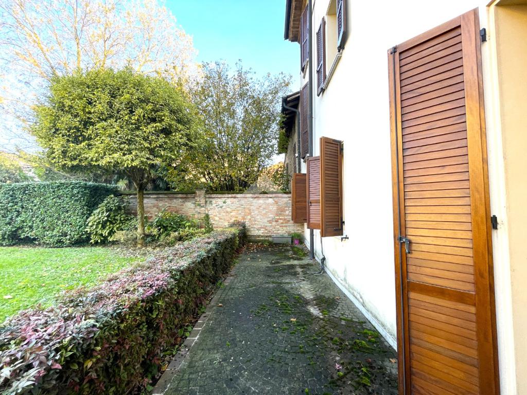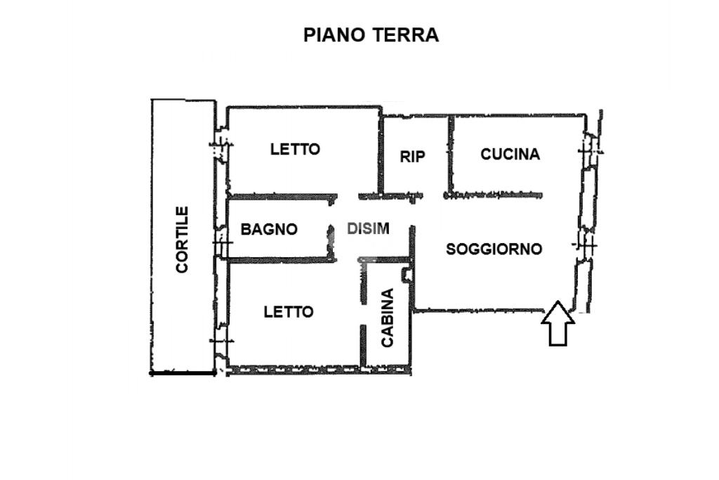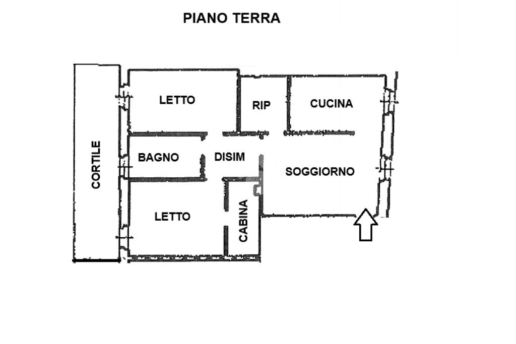 Al piano terra con ingresso sul soggiorno, cucina abitabile, due camere da letto matrimoniali di cui una con cabina armadio che accede al cortile retrostante di proprietà e bagno finestrato con doccia.