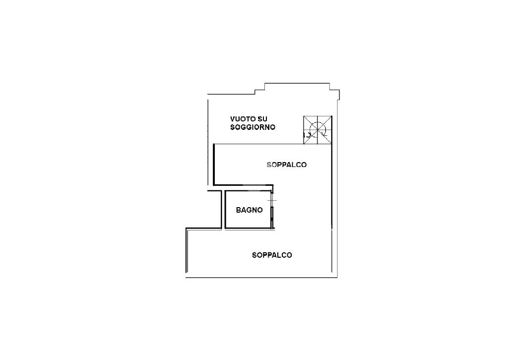 Ingresso sulla luminosa zona giorno openspace in affaccio sul balcone e con accesso al soppalco, dotato di un'ampia camera con bagno.